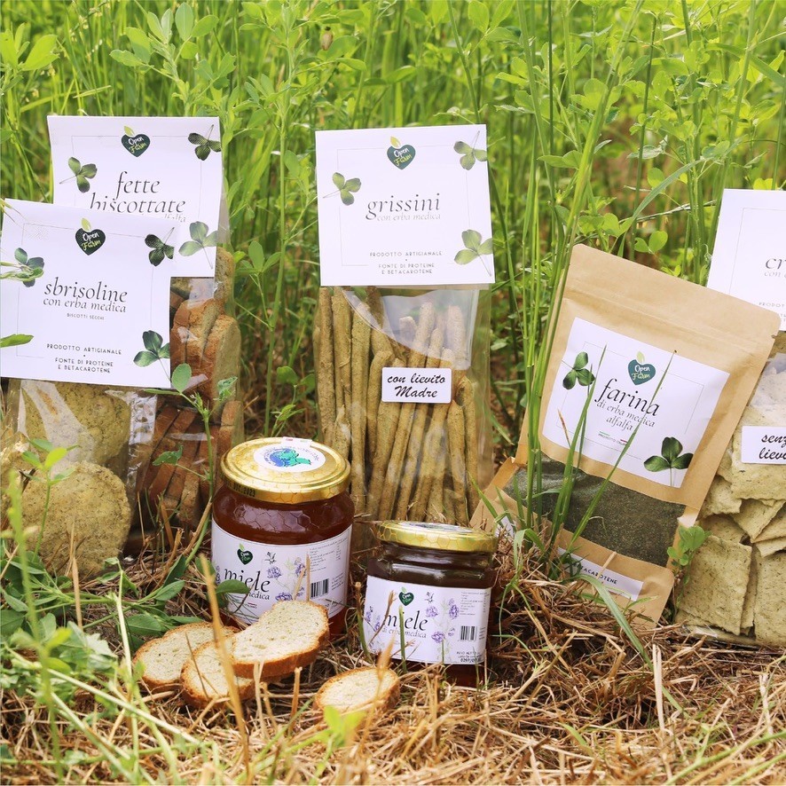 L’alimentazione delle pecore con erba medica disidratata garantisce un latte di qualità superiore, conferendo ai prodotti trasformati colori e aromi caratteristici. A questi prodotti si aggiungono quelli da forno della linea Taste Life: l’obiettivo è far vivere un’esperienza sensoriale che trasporta in un campo di erba medica verde e profumata. La gamma comprende grissini, cracker e biscotti, oltre a miele dalle straordinarie proprietà, di dolcezza moderata e con note erbacee, tipiche delle piante officinali.