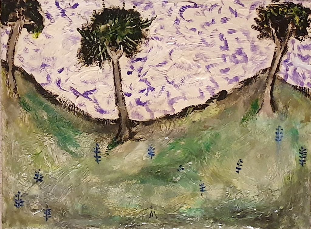 Le opere esposte sono un riflesso del suo percorso emotivo. Attraversano il territorio in cui ha vissuto e le emozioni che ha provato nelle varie fasi della crescita artistica. I paesaggi collinari delle Langhe, i luoghi dell’infanzia, le atmosfere della natura, i momenti e ricordi sono i protagonisti del racconto che l’artista ha voluto trasferire su tela con tempera, acrilico e vernice, usando una mano rapida e grezza.