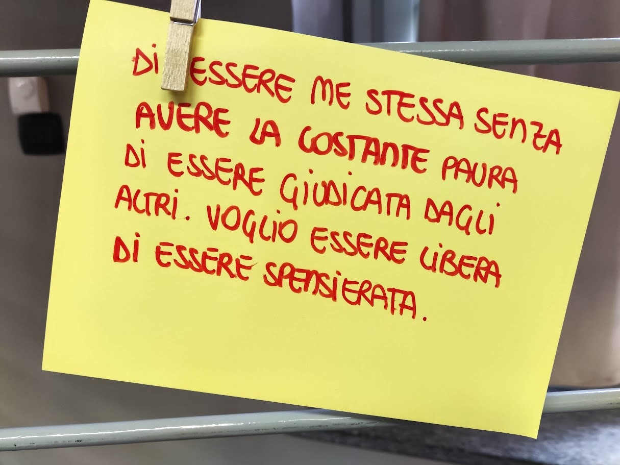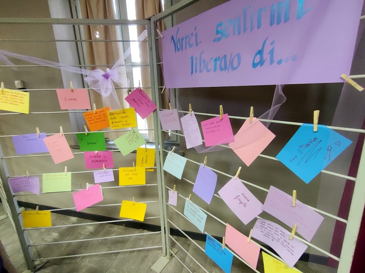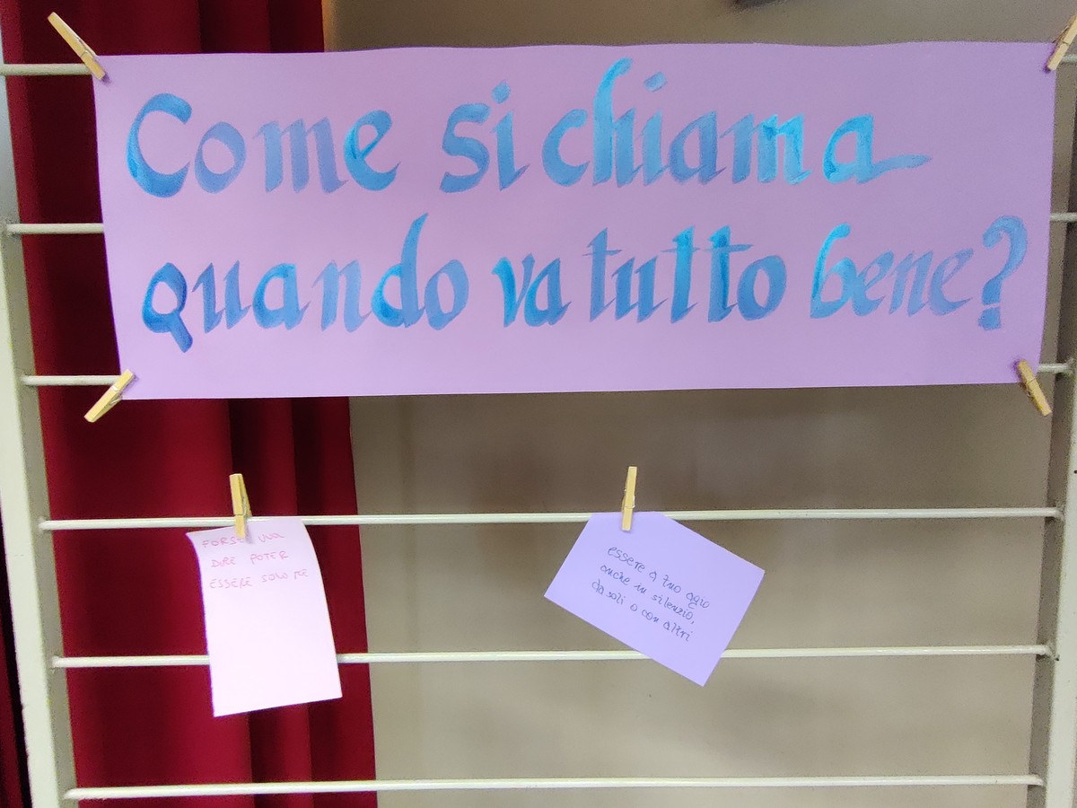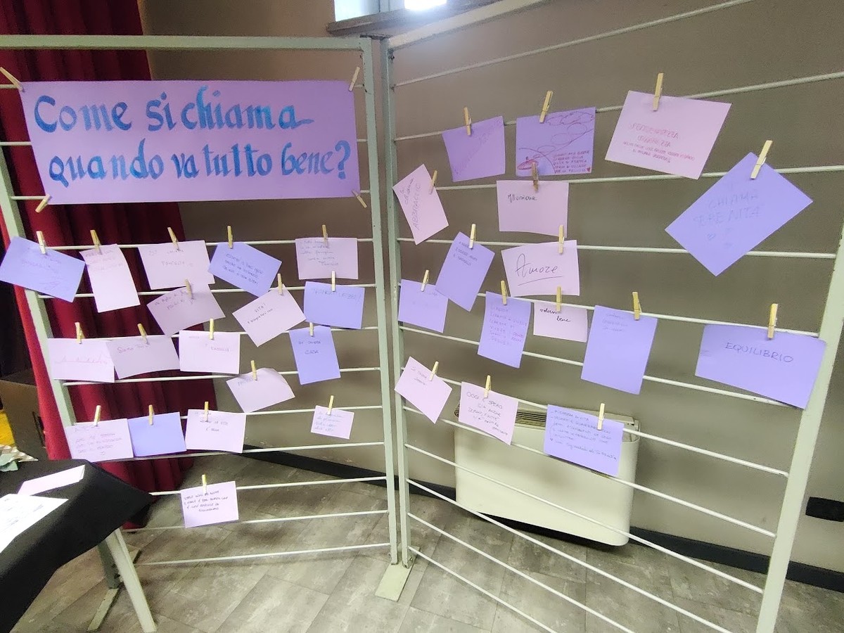 Durante l’incontro sono state lette alcune poesie di Irene e le persone sono state invitate a scrivere un pensiero, frasi che hanno completato come un puzzle le suggestioni “Come si chiama quando va tutto bene?” e “Vorrei sentirmi libero di…”.