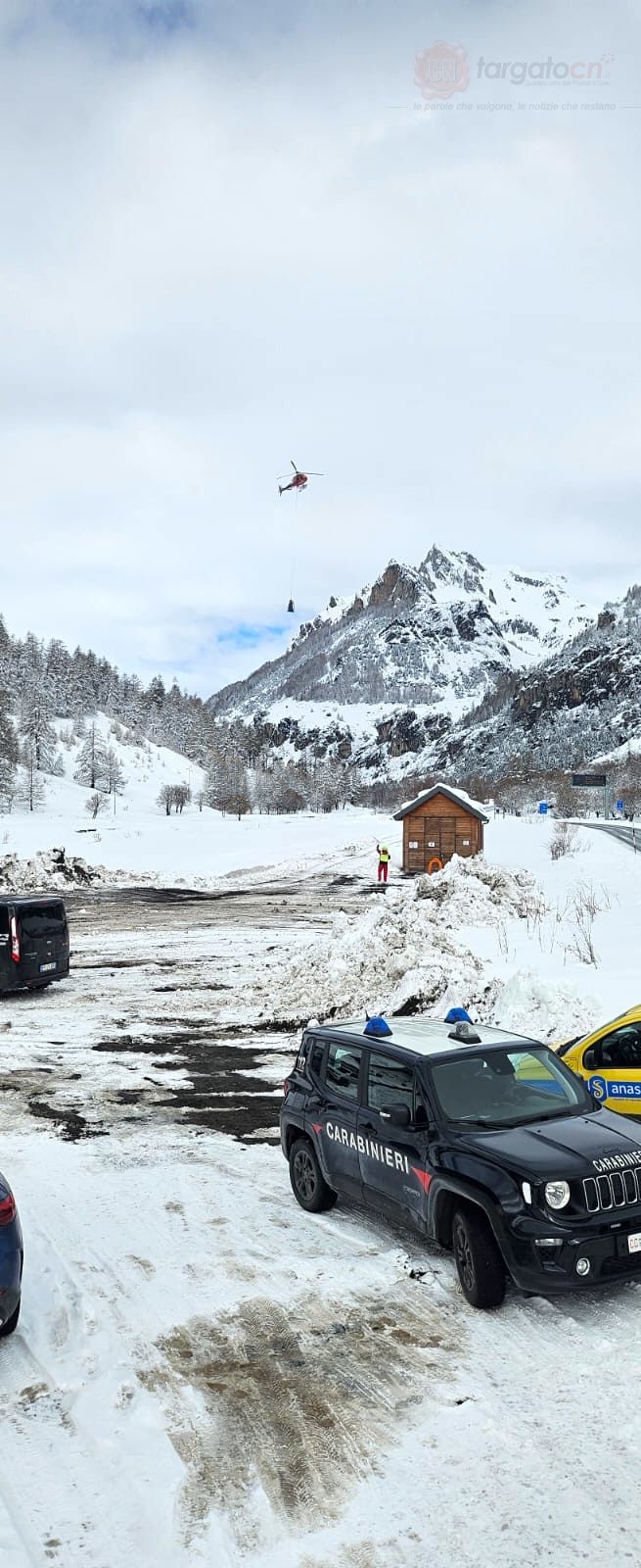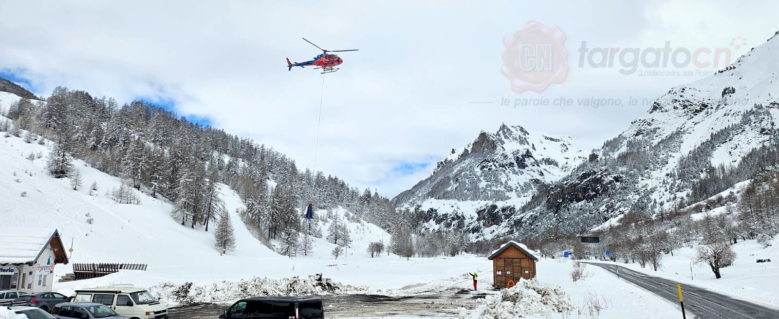 Ancora impraticabile il Colle del Maddalena, dove da questa mattina sono in corso le operazioni di disgaggio pilotato delle valanghe (foto sotto).