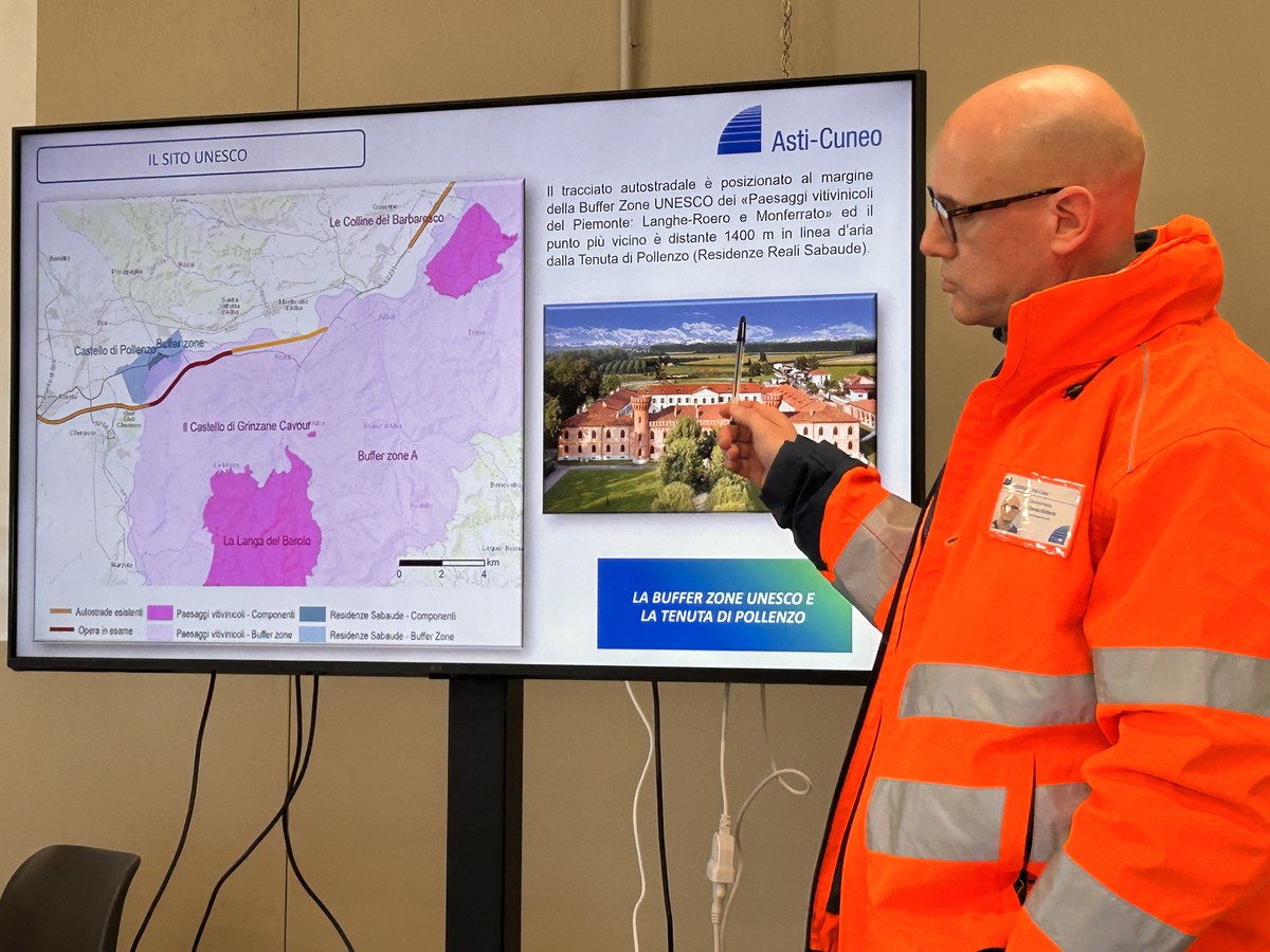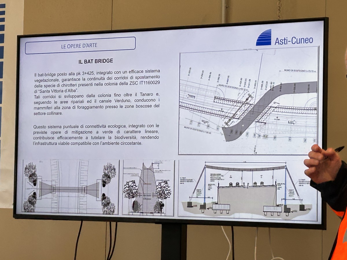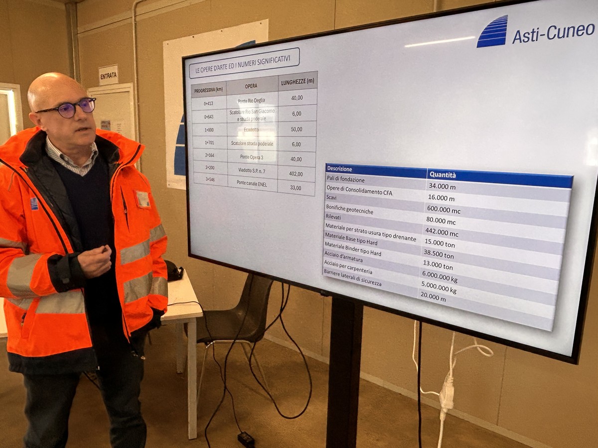 Durante il sopralluogo tenuto questa mattina, 17 marzo, i tecnici al lavoro per conto della concessionaria, a partire dal responsabile del procedimento, il direttore tecnico di Asti Cuneo Spa, ingegner Valter Re (ha iniziato a lavorare per Astm "nel lontano 1992, progettando… l’Asti-Cuneo", sic), hanno confermato quella tempistica aggiungendo che, ad oggi il cantiere è giunto al 20% del suo avanzamento ed enumerando le caratteristiche e anche le difficoltà di questo ultimo tronco, "più complesso del precedente" perché attraversa una zona collinare non particolarmente stabile, con la necessità di superare alcuni corsi d’acqua, con l’esigenza di bypassare il canale Enel e anche la Strada Provinciale 7 con un cavalcavia che avrà 400 metri di sviluppo, mentre un apposito passaggio verrà creato per consentire il passaggio della colonia di chirotteri presente a Santa Vittoria d’Alba: una presenza che nella fase progettuale aveva comportato un significativo rallentamento dell’opera.