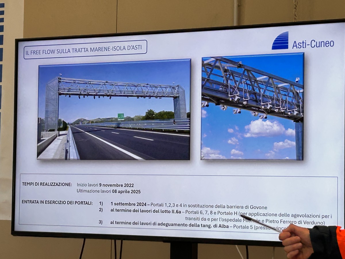 "Il cantiere aveva davanti a sé trenta mesi: siamo davanti a una contrazione importante – ha spiegato l’ingegner Re –. Dopo gennaio 2026 ci saranno da realizzare ancora alcune opere di completamento, da farsi entro aprile. Da quel momento buona parte del pedaggiamento verrà effettuato coi portali automatizzati del sistema 'free flow', con l’accensione di tutti gli otto portali escluso il numero 5, per il quale servirà attendere i 600 giorni di lavori previsti per la sistemazione della tangenziale albese, ancora ferma in attesa della valutazione di impatto ambientale. Un sistema quest’ultimo che è stato al centro di alcune problematiche, per quanto riguarda l’aspetto del pagamento, ma che rappresenta il futuro e consente importanti risparmi in termini di consumo del territorio".
