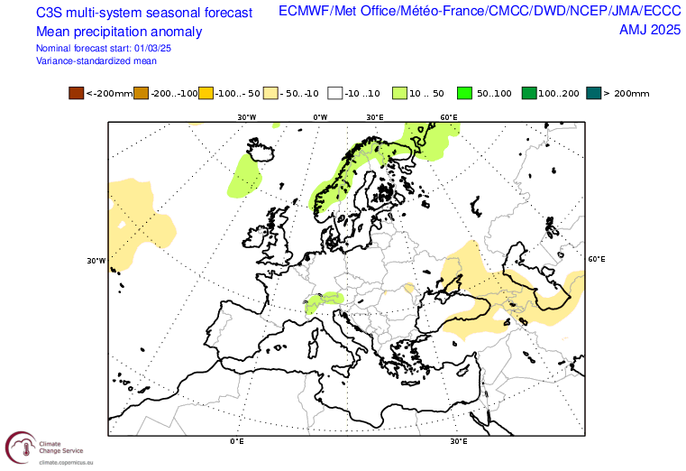 Guardando un po' più avanti nella stagione, secondo i modelli stagionali le temperature del trimestre aprile-giugno potrebbero essere oltre la media del periodo, mentre per quanto riguarda le precipitazioni, soprattutto aprile ed in parte maggio potrebbero essere più piovosi del normale. Questo è quanto emerge dalle ultime proiezioni relative ad inizio marzo distribuite dall'ente europeo Copernicus, che raccoglie le previsioni stagionali di diversi enti meteorologici mondiali e li aggrega per avere una proiezione d'insieme sull'andamento climatico nei mesi successivi.