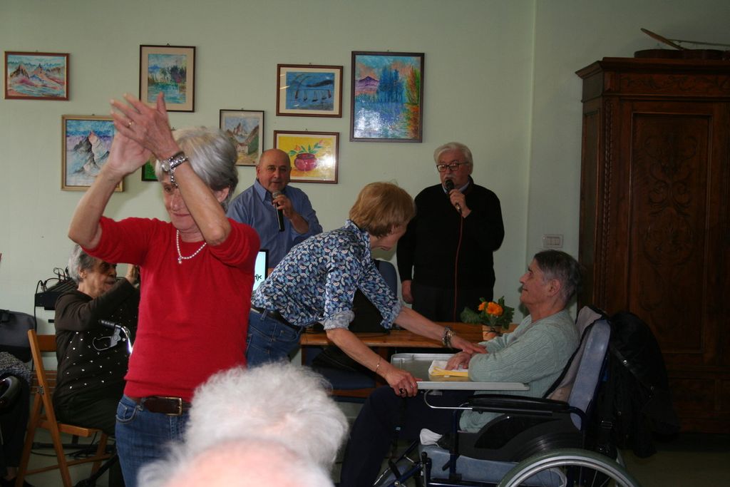 Al termine del pranzo la festa è continuata con l’intrattenimento a cura dell’Associazione di volontariato Manganum, che da anni, gratuitamente, grazie a Gisella, Claudio e Marzia, rallegra le giornate nella casa di riposo.