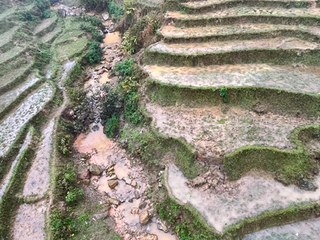 L’avventura continua, con un treno notturno diretto a Sapa. Il tragitto è stato lento, tra cigolii e fermate in stazioni secondarie, ma ci ha offerto uno sguardo diverso: quello della lentezza, della transizione. All’arrivo, ci ha accolto la nebbia delle montagne, densa e misteriosa. Le famose terrazze del luogo erano appena visibili, ma proprio per questo sembravano più vere. Il trekking ci ha condotti tra i piccoli villaggi, dove le donne, vestite con abiti tradizionali, ci hanno accolti con sorrisi sinceri. Abbiamo attraversato campi, sentieri scivolosi, ruscelli e ponti sospesi. La pioggia e l’aria secca di montagna hanno accompagnato le nostre giornate.
