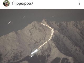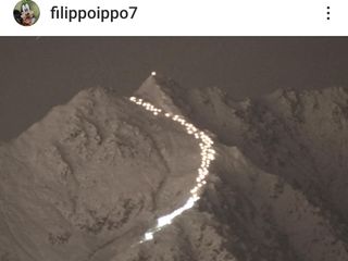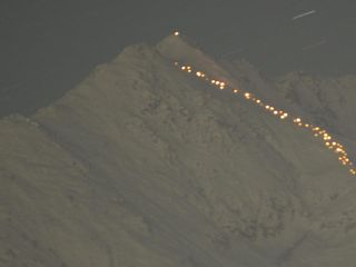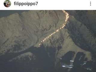 Una volta raggiunta la cima della montagna, da dove sono stati sparati alcuni razzi luminosi, i partecipanti sono scesi in fila con le fiaccole, disegnando un percorso visibile anche da lontano. Ecco alcune suggestive immagini.