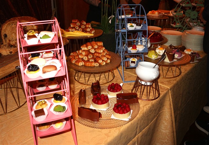 A concludere questa straordinaria cena, un grandioso buffet di dolci, realizzato dai maestri pasticceri Chicco e Bobo Cerea del celebre ristorante Da Vittorio di Brusaporto (BG), insignito di tre stelle Michelin. Un trionfo di dolcezza che ha offerto un’ampia selezione di classici e innovazioni dolciarie. Per accompagnare queste delizie, un elegante Moscato d'Asti DOC Bava, dal profumo aromatico e dal sapore fresco, il Vermouth di Torino Cocchi e le Grappe di Romano Levi insieme al Cafè Special Coffee.