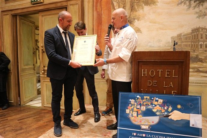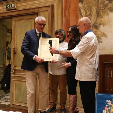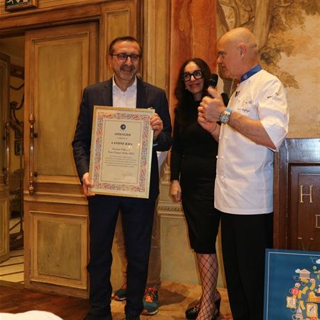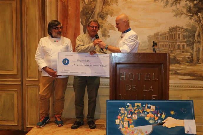 Alla fine della serata, Euro Toques ha offerto un contributo economico alla cooperativa sociale “La Fabbrica di Olinda” (https://www.olinda.org/), poiché tra gli obiettivi di Euro Toques ci sono anche la solidarietà e il supporto alle iniziative sociali.