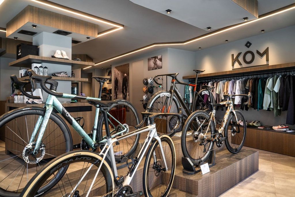 KOM non è solo una boutique: è un'esperienza unica, un luogo dove il ciclismo incontra l'eleganza e lo stile. Ogni aspetto di questo spazio esclusivo è pensato per chi non si accontenta mai. Non solo biciclette di alta gamma, ma anche un ambiente dove il design moderno e i materiali di pregio si fondono armoniosamente, creando un'atmosfera di lusso sobrio e raffinato.