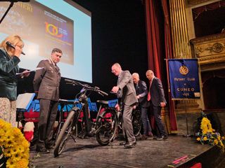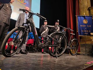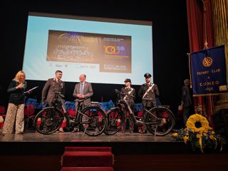 Durante la serata il presidente Luigi Fontana a nome del Rotary Cuneo ha donato al Comando provinciale dei Carabinieri di Cuneo, rappresentato dal colonnello Marco Piras, due biciclette a pedalata assistita.