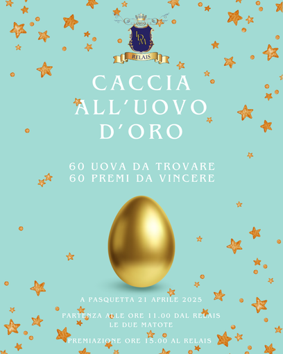 Lunedì 21 aprile, a partire dalle ore 11.00 grandi e piccini potranno cimentarsi in una caccia al tesoro diffusa, esplorando gli angoli più suggestivi del relais, del suo giardino fiorito e del paese di Bossolasco, dove 60 misteriose "Uova d'Oro" verranno nascoste tra le rose e i sentieri del borgo annoverato tra i più belli d'Italia.