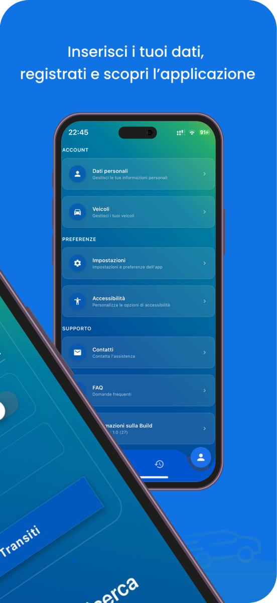 ▪ Esperienza personalizzata: accedendo dal proprio account, l’utente potrà usufruire di un servizio su misura, per visualizzare in maniera intuitiva il proprio elenco transiti o il proprio profilo di conto targa