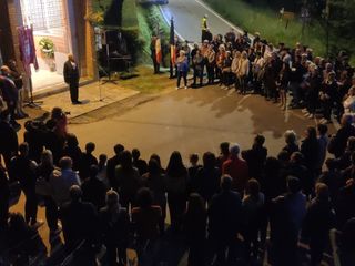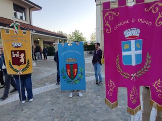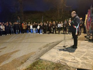 I gonfaloni dei paesi di Treiso, Trezzo Tinella e Castiglione Tinella hanno aperto la fiaccolata che ha raggiunto in serata il sacrario di frazione Canta, costruito in memoria di 21 giovani vittime del nazifascismo, fra cui i tre fratelli Ambrogio, Lorenzo, Vincenzo e Giovanni.