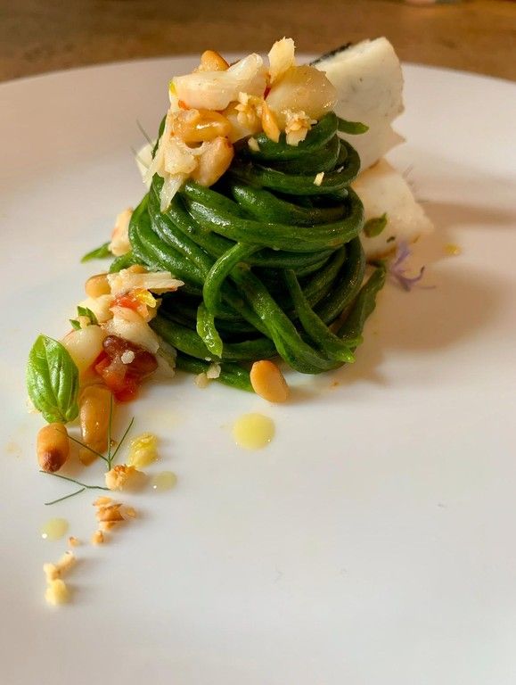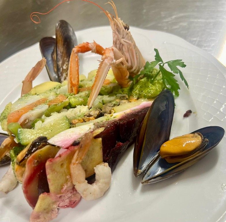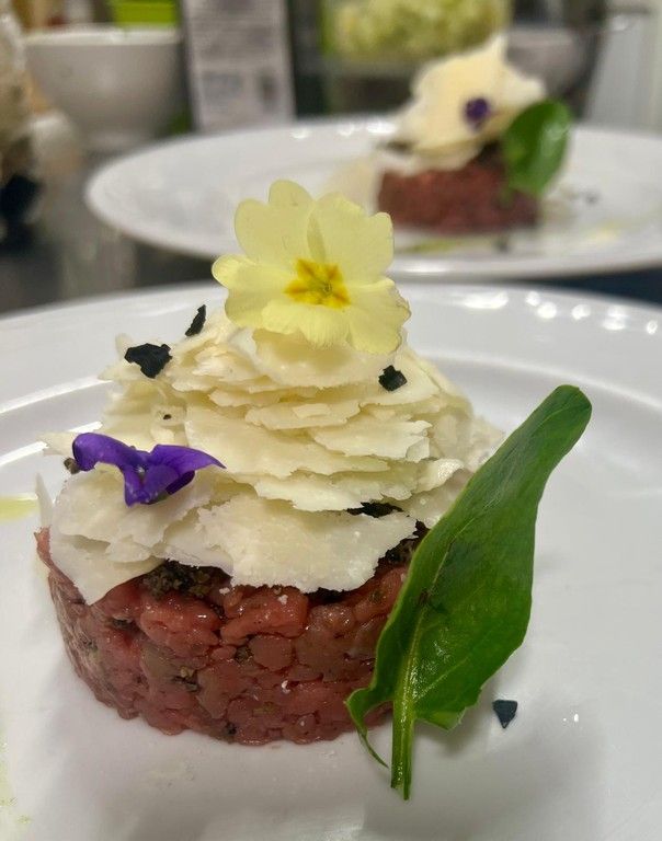 E non è solo un modo di dire. All’Osteria del Castello ogni ingrediente ha una storia. La carne arriva solo da aziende agricole selezionate. Le uova, le farine, le verdure, i salumi: tutto ha origine biologica certificata. Anche le erbe spontanee sono raccolte a mano da chef Paolo stesso nei dintorni del borgo. Ortiche, tarassaco, borragine: ingredienti poveri, ma profondi, che si trasformano in fettuccine, ripieni o aromi. È la cucina contadina, che sa essere elegante.