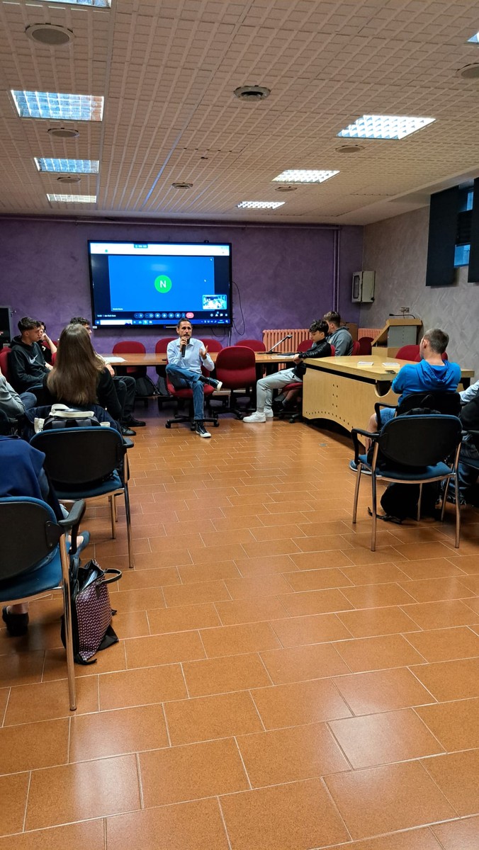 La visita si è articolata in due momenti. Alle ore 12, Morosinotto ha dialogato con gli studenti delle classi seconde sui romanzi L'Ultimo cacciatore e Temporali, rispondendo alle domande moderate dagli stessi ragazzi, in un confronto vivace e stimolante. Successivamente, alle 15.30, si è tenuto un incontro formativo aperto al pubblico sull’uso dell’intelligenza artificiale a scuola, occasione utile di approfondimento per docenti e operatori educativi.