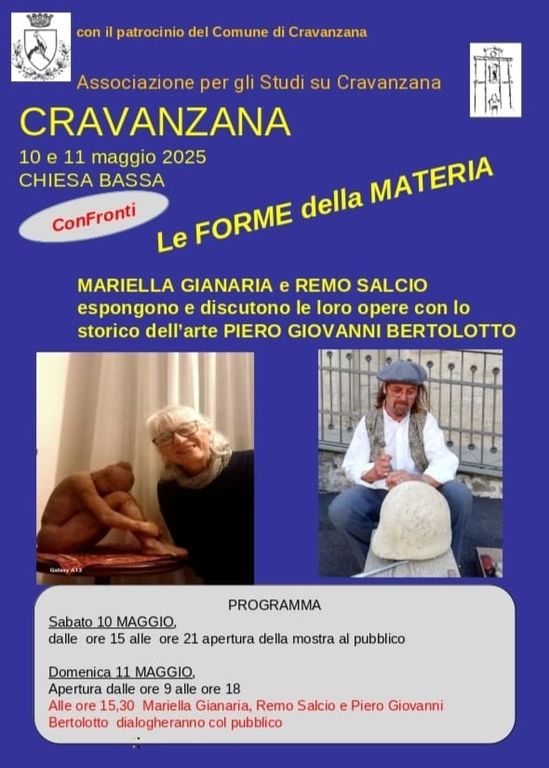 Con il patrocinio del Comune di Cravanzana, l’Associazione per gli Studi su Cravanzana presenta un nuovo appuntamento culturale da non perdere: la mostra “Le Forme della Materia”, in programma il 10 e 11 maggio 2025 nella suggestiva cornice della Chiesa Bassa del paese.