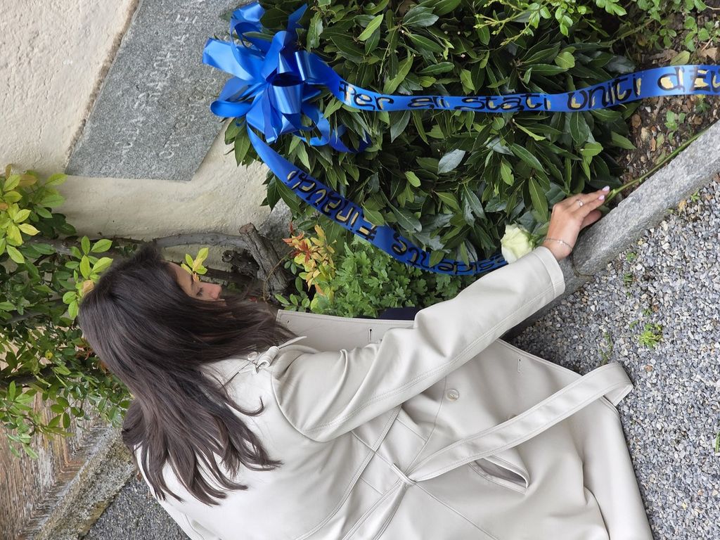 La cerimonia si è aperta con la deposizione di una corona di alloro accompagnata da una rosa bianca e un momento di raccoglimento davanti alla tomba di Einaudi, simbolo della visione di un'Europa libera, coesa e solidale.