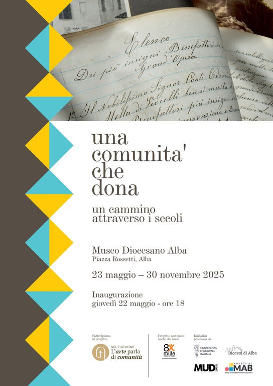 L’Ufficio Beni Culturali Ecclesiastici della diocesi di Alba ha aderito al progetto mettendo in mostra alcune opere d’arte della Cattedrale di Alba e documenti cartacei dell’archivio storico e della biblioteca diocesana che raccontano come le comunità di ieri hanno contribuito, attraverso la fede, la cura e le donazioni, alla definizione di un importante patrimonio storico e artistico di cui oggi ne siamo i custodi. Compito delle comunità di oggi è infatti quello di prendersi cura di questa eredità: i fondi dell’8xmille che i contribuenti scelgono di destinare alla Chiesa Cattolica sono una risorsa importante per contribuire alla conservazione e al restauro di edifici religiosi, opere d’arte, antichi documenti o libri.