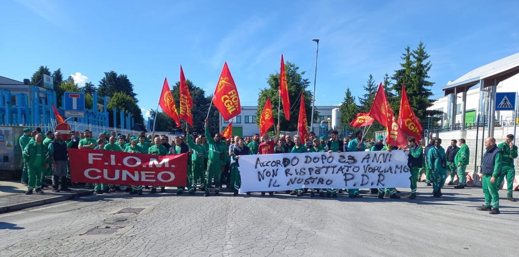 Secondo Fiom Cgil è stata pari a circa il 60-70% l’adesione dei lavoratori della Merlo allo sciopero che la sigla sindacale dei metalmeccanici ha indetto per oggi, mercoledì 21 maggio, presso lo stabilimento di San Defendente di Cervasca per protestare contro lo stallo delle trattative per il rinnovo del contratto nazionale di categoria, ferme dal novembre scocrso, ma anche per chiedere il rispetto degli accordi della contrattazione di secondo livello in merito al premio di produzione, che il gruppo leader dei sollevatori telescopici, forte di quasi 1.200 addetti, ha sinora riconosciuto mediante un pagamento avvenuto nei giorni scorsi nella misura di 900 euro, contro i 1.275 euro complessivamente dovuti secondo i rappresentanti dei lavoratori.