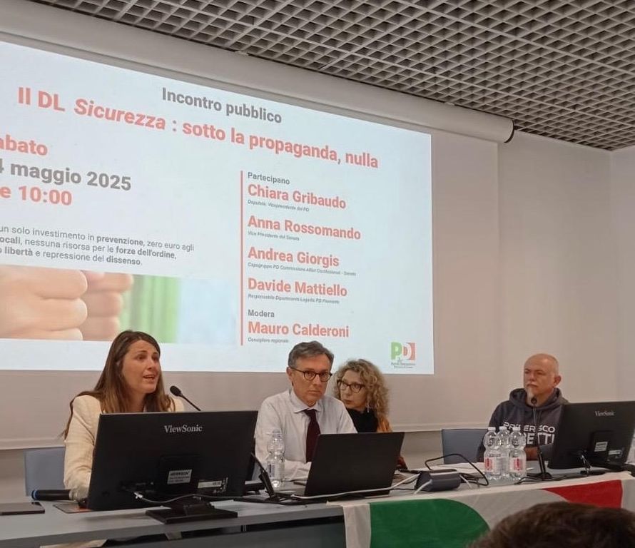 Il Partito Democratico, grazie agli interventi dei vari ospiti, ha chiarito che in realtà non ci sono risorse per la prevenzione, per i Comuni, per le forze dell’ordine. Al loro posto, norme che restringono il dissenso e alimentano paura. Dobbiamo ripartire dalla realtà delle comunità e dai valori costituzionali.