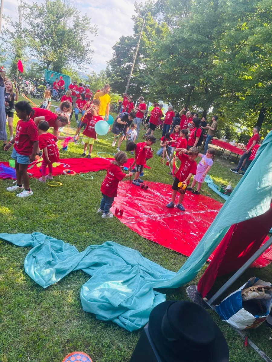 Qui, ad accoglierli, una merenda condivisa, l’animazione teatrale del Collettivo Scirò, un mini circuito ciclistico per i più piccoli e tante magliette rosse distribuite per colorare la giornata. “È andata molto bene, con grande entusiasmo e senza problemi: un pomeriggio diverso, con tanti bambini.", ha dichiarato Armando Bauduino, vicepresidente del Comitato “La Vuelta Alba”.