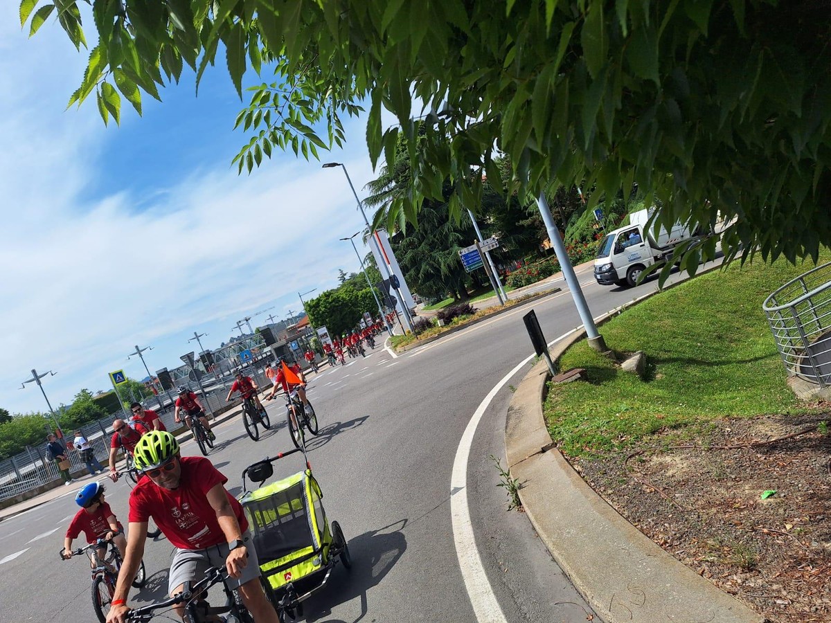 È iniziato con una pedalata lenta e gioiosa il cammino di Alba verso la seconda tappa della Vuelta a España, che partirà dalla città il prossimo 24 agosto. Domenica 25 maggio, oltre cento persone si sono ritrovate in piazza Medford per partecipare alla prima tappa di “Aspettando La Vuelta”, una serie di eventi pensati per vivere in modo partecipato l’attesa della grande corsa. Famiglie, bambini, appassionati e cittadini comuni hanno seguito un percorso di circa otto chilometri attraversando corso Nino Bixio, il ponte Albertino, corso Bra e Piana Biglini, fino a salire verso Scaparoni.