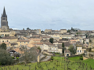 A Saint-Émilion, che si trova a meno di un'ora da Bordeaux ed è facilmente raggiungibile anche con i mezzi pubblici, grazie a una stazione ferroviaria poco distante. È un borgo incantevole medievale, arroccato su una collina, con un centro storico raccolto e curato, fatto di stradine in salita, chiese antiche e scorci suggestivi. Dalla parte alta, vicino alla chiesa, si apre la vista sui vigneti che circondano il paese. Ci sono stata a marzo, quando le viti erano state appena potate: il paesaggio aveva un'eleganza sobria, disegnato da linee ordinate che seguivano dolcemente il profilo delle colline. Immagino però che a fine estate, con i filari maturi e i colori caldi della stagione, sia decisamente più spettacolare.