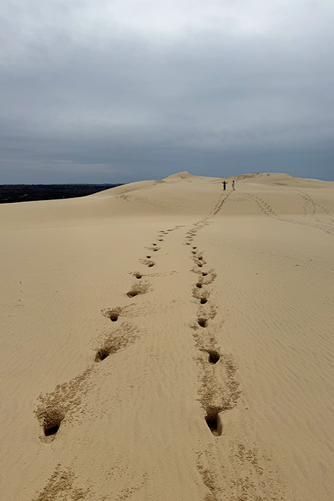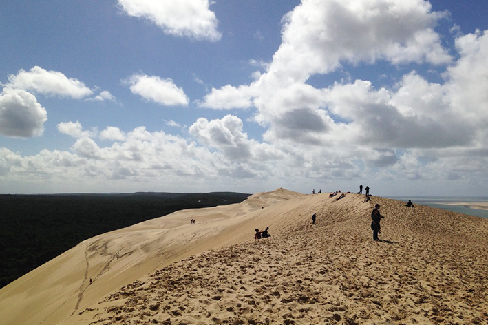 Ad Arcachon, affacciata sull'Atlantico, dove ci siamo fermati per gustare ostriche freschissime direttamente dai produttori locali. Da lì abbiamo raggiunto la Dune du Pilat, la collina sabbiosa più alta d'Europa. Salirla a piedi nudi è stato impegnativo ma appagante: sabbia fine sotto i piedi, il vento tra i capelli e un panorama che toglieva il fiato. Dall'alto si apre un paesaggio sorprendente, fatto di contrasti: alle spalle, il bosco di pini marittimi; di fronte, l'oceano dai colori quasi tropicali. Una meraviglia inattesa, che da sola vale il viaggio.
