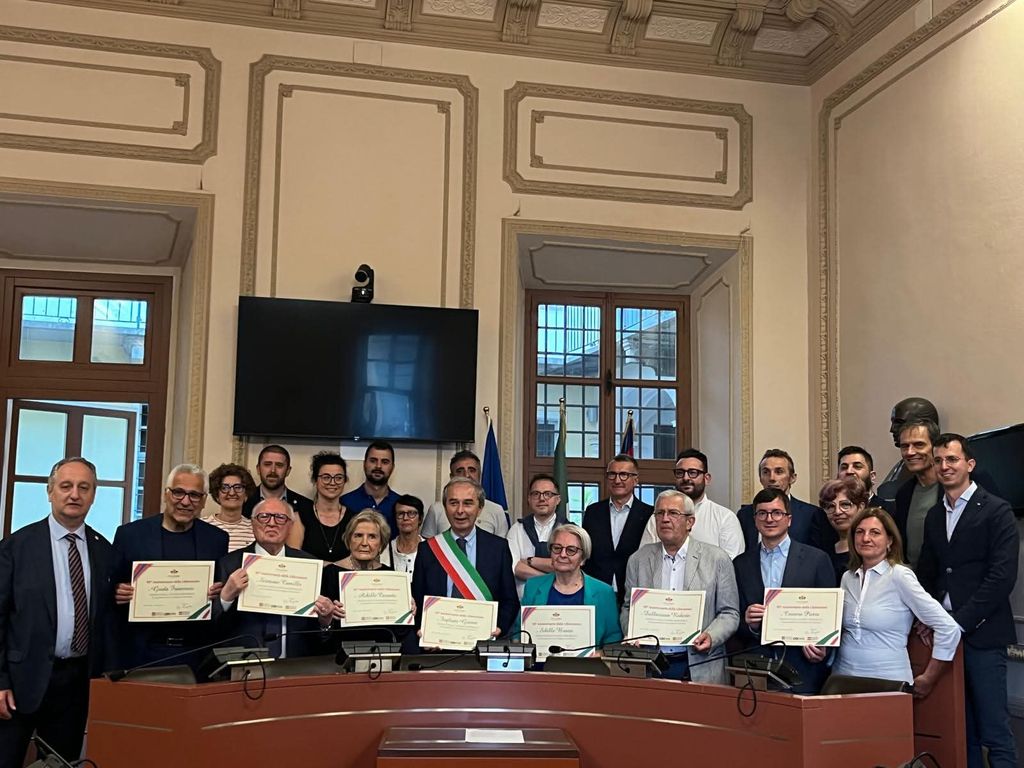 Causa maltempo, la festa si è poi spostata nella sala consigliare, dove è stata conferita a tutti i sindaci della città dal 1945 ad oggi (ai famigliari per quelli che oggi non ci sono più) una pergamena commemorativa, come da iniziativa proposta dal Consiglio regionale del Piemonte e dal Comitato Resistenza e Costituzione per l’80° anniversario della Liberazione, celebrato il 25 aprile scorso.