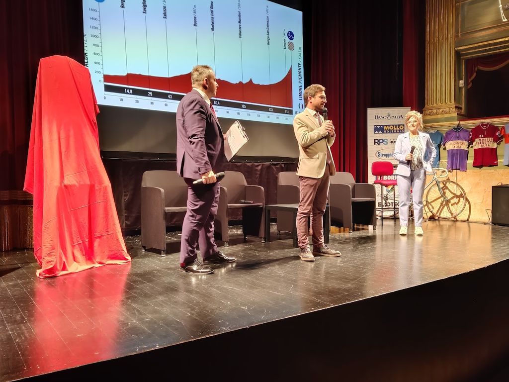 In attesa della conferenza stampa ufficiale, organizzata dalla Regione Piemonte per il prossimo 11 giugno a Torino, sono stati svelati alcuni dettagli della tappa cuneese da parte del responsabile regionale dei grandi eventi Davide Balena e ci sono stati i saluti del sindaco di Alba Alberto Gatto, della vicesindaca di Limone Piemonte Antonella Mariotti, dell’assessore allo sport del Comune di Alba Davide Tibaldi e del consigliere regionale Daniele Sobrero.