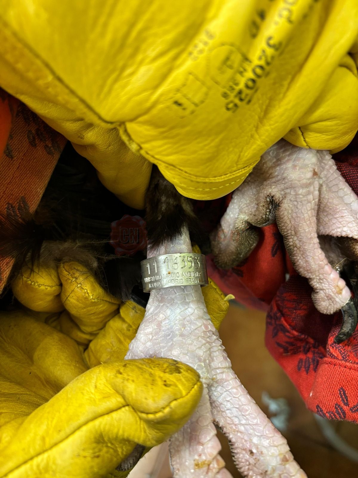 L'animale, provvisto di anelli di riconoscimento, è stato identificato come appartenente al Ministero dell'Ambiente spagnolo.