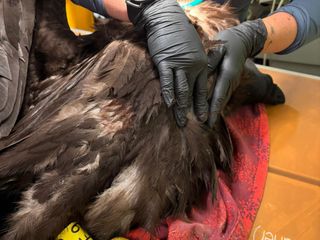 L'animale, provvisto di anelli di riconoscimento, è stato identificato come appartenente al Ministero dell'Ambiente spagnolo.