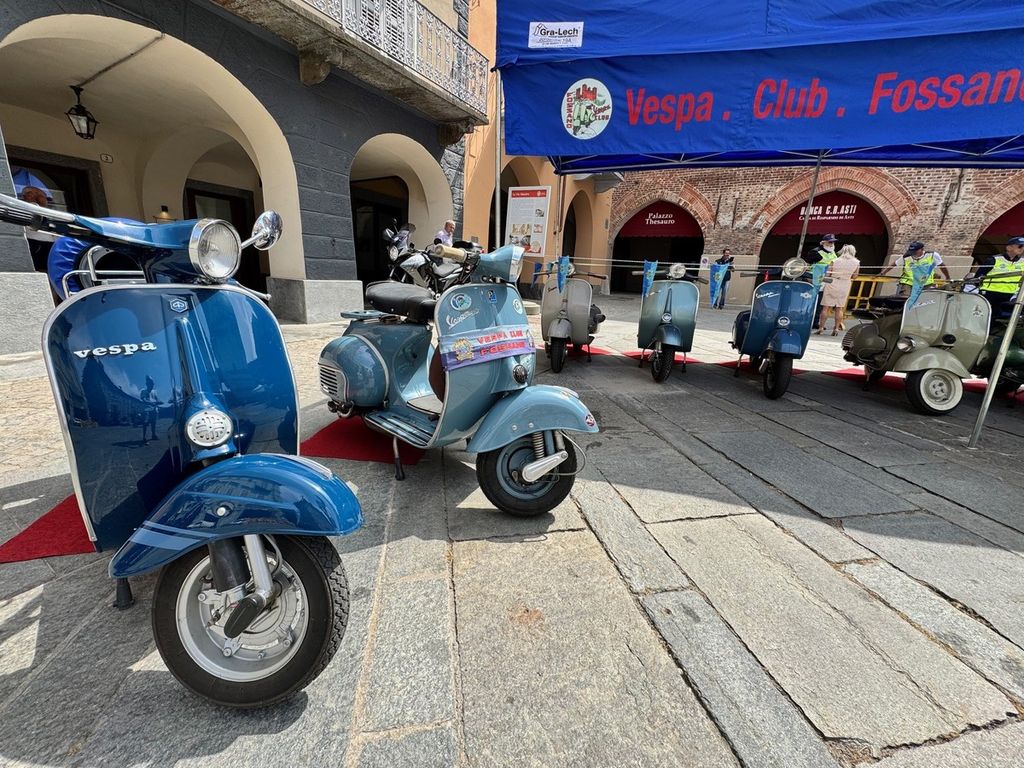 In Piazza Manfredi è stata allestita un’esposizione statica di Vespa storiche appartenenti ai soci del Vespa Club Fossano. Tra i modelli ammirati, due Vespa 125cc "faro basso" del 1952 e del 1954, simili a quella guidata da Audrey Hepburn e Gregory Peck nel celebre film Vacanze Romane. Particolarmente interessante anche una rara GS VS2 del 1956, che partecipò a diverse gare di regolarità in salita alla fine degli anni ’50: si distingue per la presenza di un serbatoio supplementare alloggiato nella ruota di scorta.