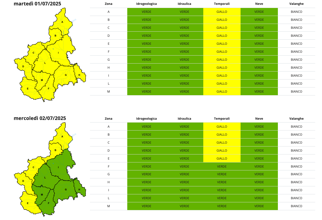 Il quadro è previsto in miglioramento per domani, mercoledì 2 luglio, quanto, con riguardo alla nostra provincia, l’allerta rimarrà tale, al primo livello di rischio, limitatamente alle Valli Po, Varaita, Maira e Stura.