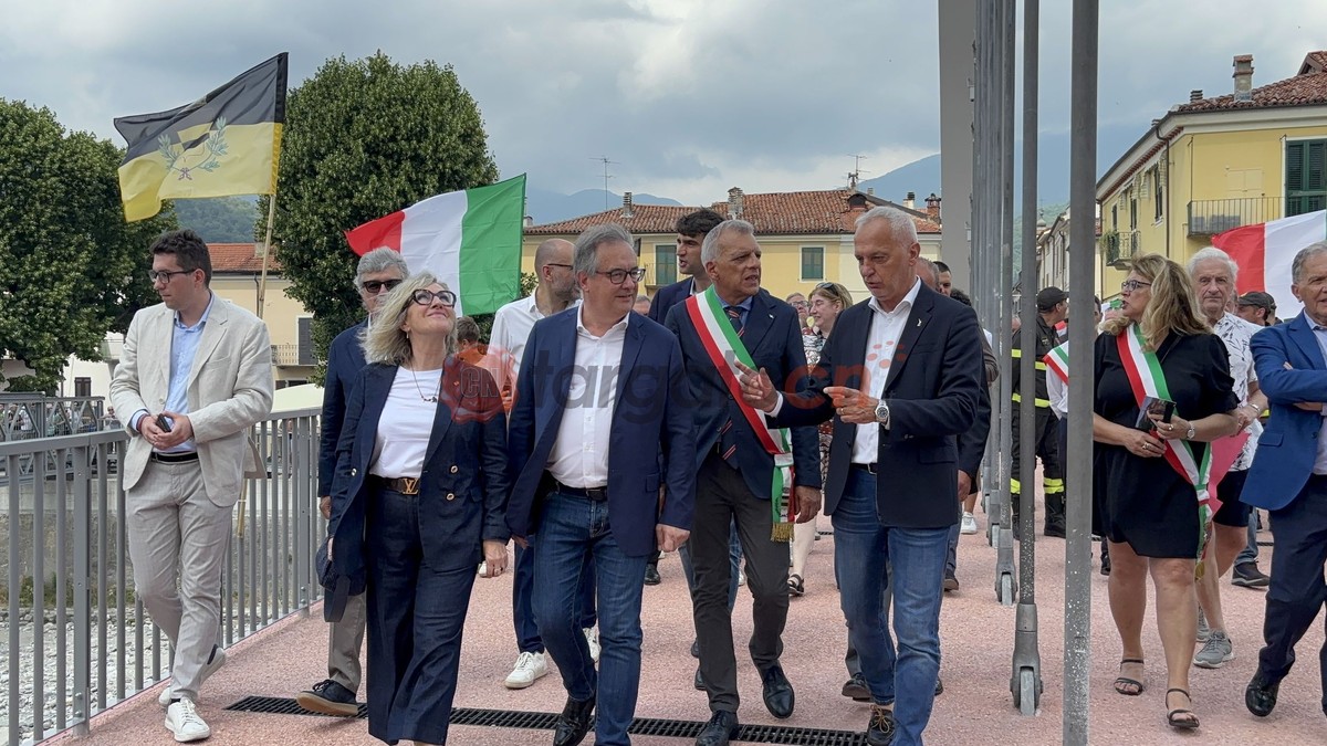 ll taglio del nastro, accompagnato dall'Inno, cantato da Barbara Uhl, ha dato il via ufficiale all'apertura della passerella pedonale che, finalmente, ha riunito il borgo Ponte.