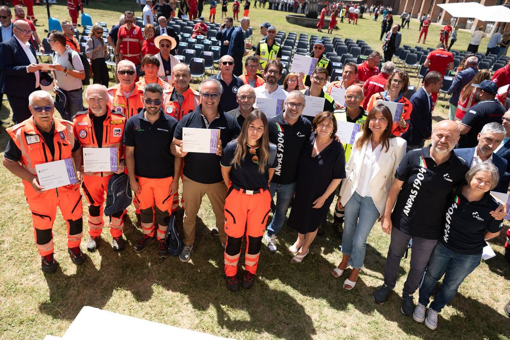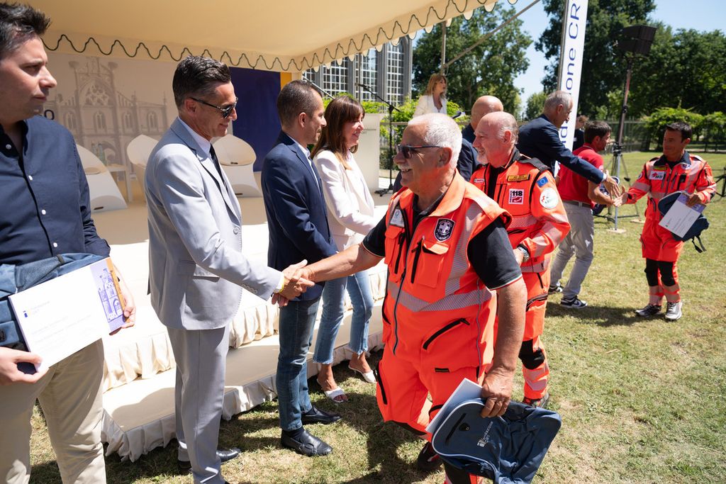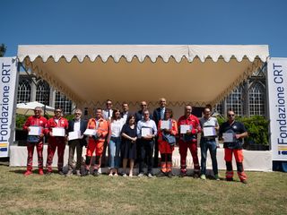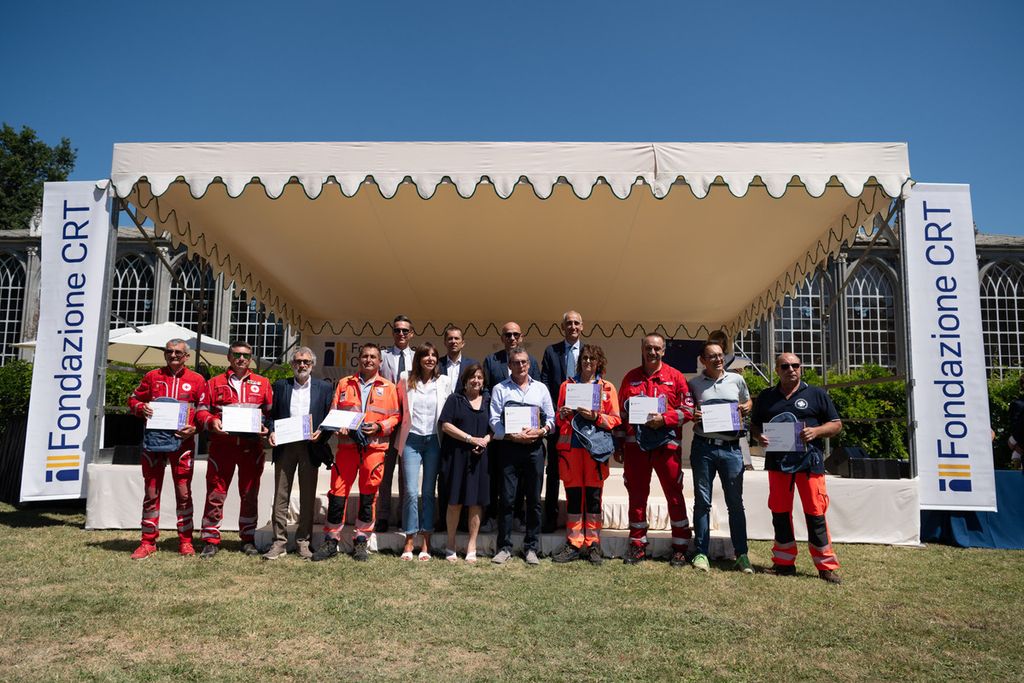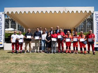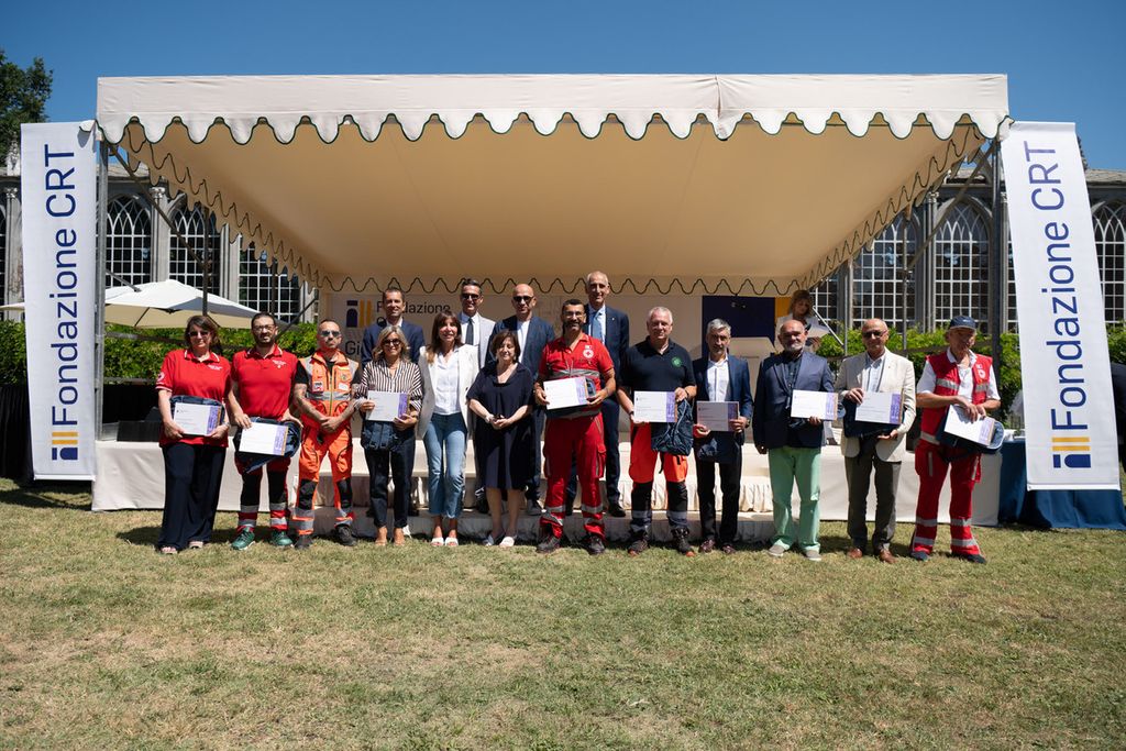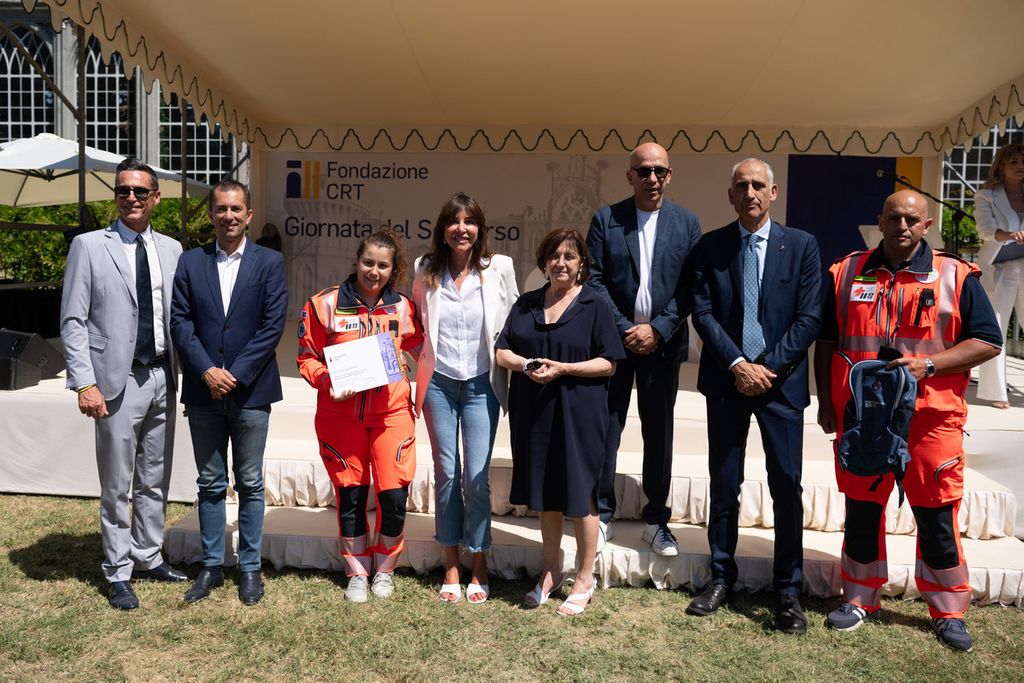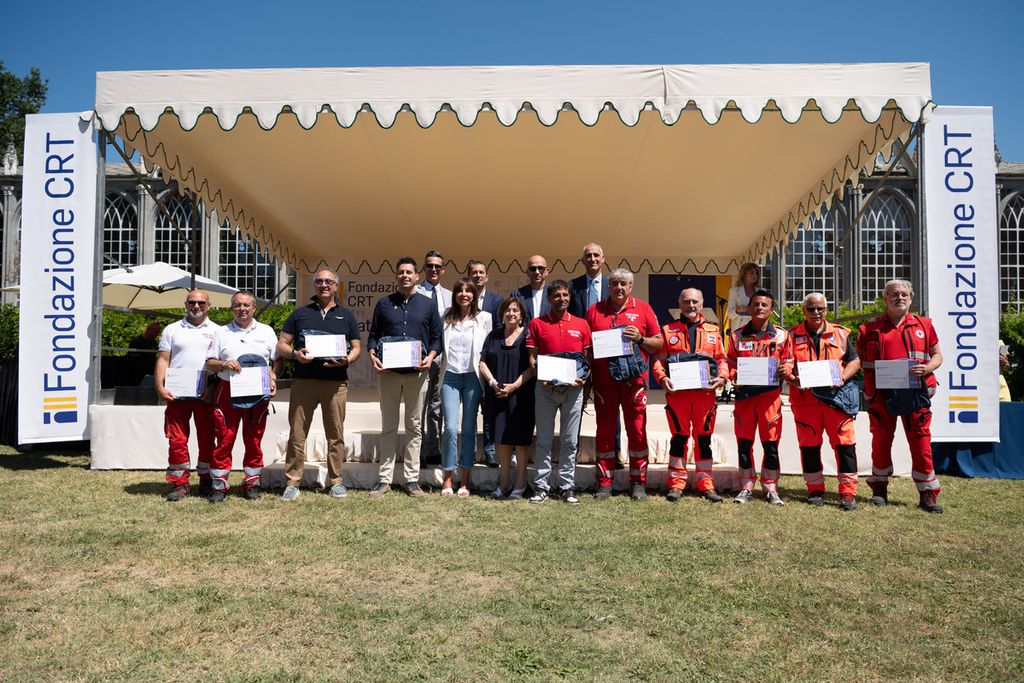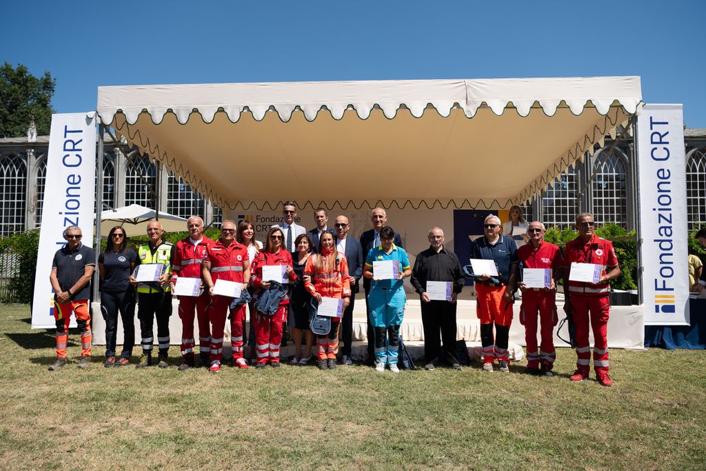 La premiazione dei vincitori del bando Missione Soccorso (edizioni 2023-2024-2025) e Colonna Mobile Regionale è avvenuta alla Giornata del Soccorso 2025 che si è svolta presso la Margaria del Castello di Racconigi, il 10 luglio, alla presenza della presidente della Fondazione Crt Anna Maria Poggi, del segretario generale della Fondazione Crt, Patrizia Polliotto e dell’assessore alla Protezione Civile della Regione Piemonte Marco Gabusi.
