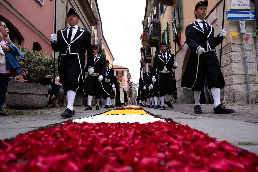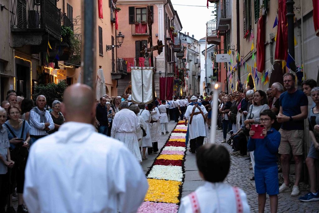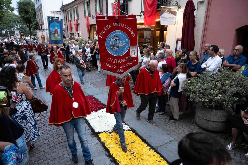 Fin dalla mattina si è svolta l’Infiorata, con la composizione di mosaici floreali lungo Contrada Mondovì e via Roma, dedicati al tema “Pace”, in linea con il messaggio del Giubileo 2025. L’opera è stata realizzata da volontari e cittadini coordinati dal Comitato Festeggiamenti Madonna del Carmine e dalla Confraternita di Santa Maria del Suffragio e San Filippo Neri di Sassello, insieme ai Volontari per l’Arte.