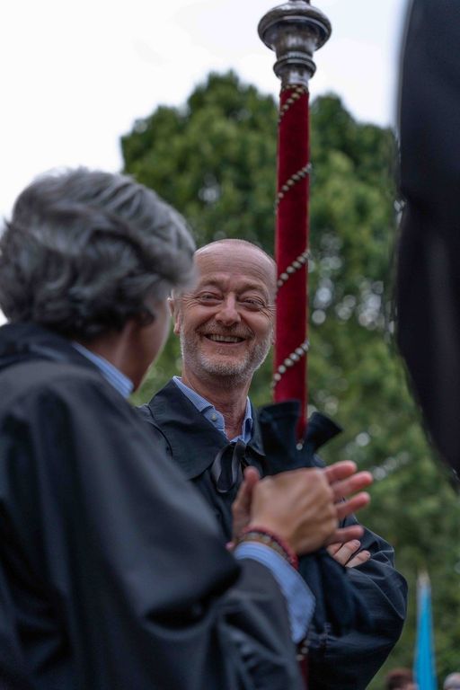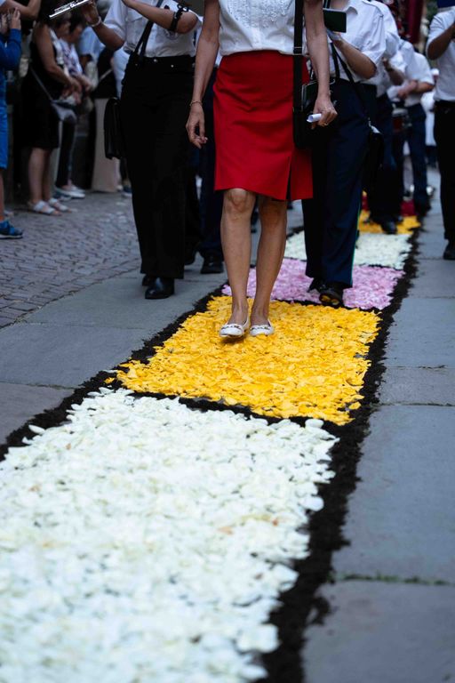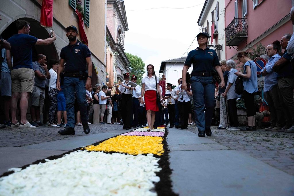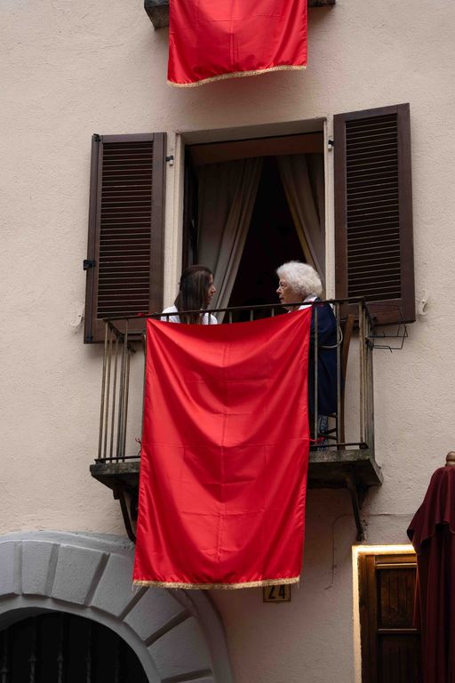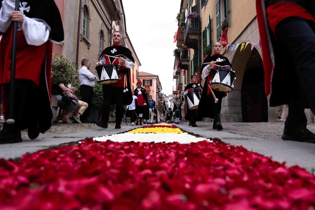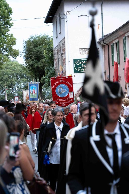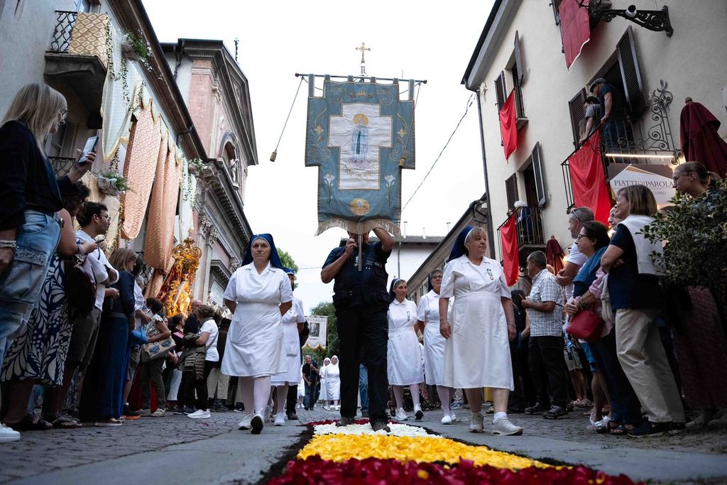 La statua della Madonna ha attraversato via Roma e si è fermata in piazza Galimberti, dove è stato reso omaggio dalle autorità civili e religiose. Al passaggio, dai balconi addobbati con drappi rossi sono stati lanciati petali di rosa sul corteo, simbolo di devozione e partecipazione popolare.