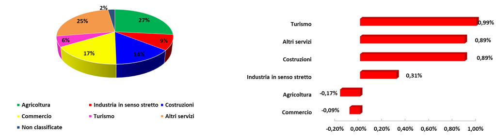 Il bilancio tra nuove iscrizioni e cessazioni si è tradotto in un tasso di crescita del +0,40%, più alto rispetto a quello del II trimestre dello scorso anno (+0,32%). Il risultato provinciale è lievemente inferiore a quello medio regionale (+0,45%) e nazionale (+0,56%).