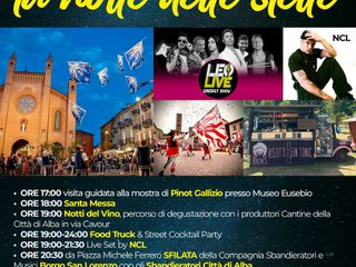 Si potrà degustare con “Notti del Vino”, dalle ore 19:00, percorso di degustazione in via Cavour in collaborazione con l’Associazione Nazionale Città del Vino, con le Cantine della città di Alba e a cura di Go Wine.
