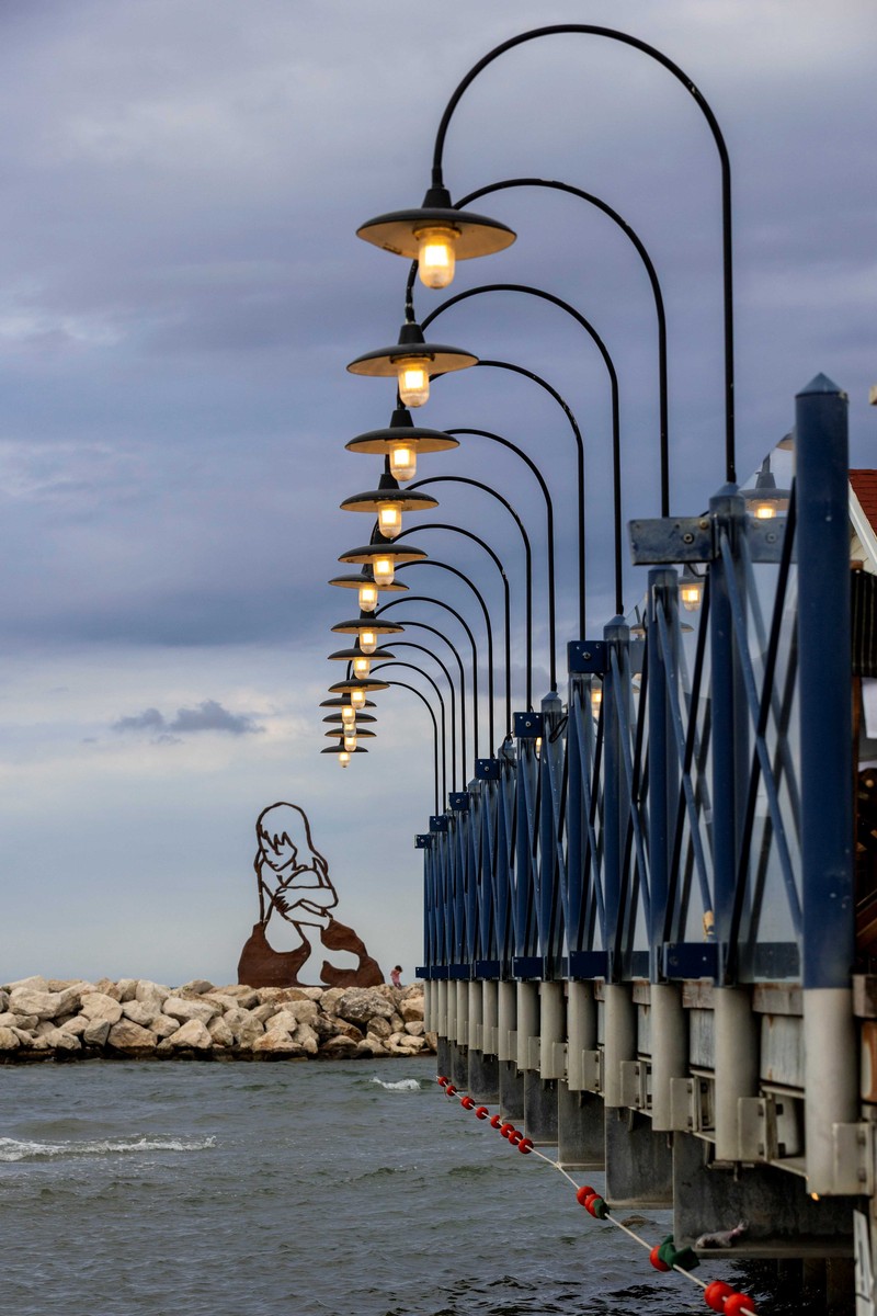 Quel linguaggio si sposta, senza spezzarsi, verso il mare. A Milano Marittima, dove l’8 agosto si inaugura Non basta il canto delle sirene, alta sei metri, visibile a 360 gradi e immersa nell’acqua, la scultura – illuminata la sera grazie al progetto di Hera Luce – chiude idealmente il Mare d’Arte Festival, che ha trasformato la località balneare in una galleria a cielo aperto. Dopo Razza Umana di Oliviero Toscani, arriva ora il bronzo lucente di Berruti, una sirena-bambina che non canta per ammaliare, ma per custodire.