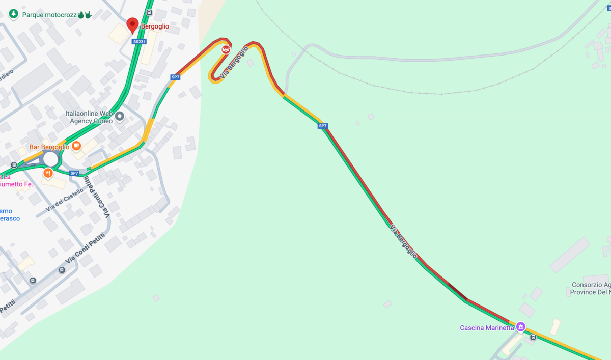 [Nell'immagine di Google le code registrate in questi minuti nella tratta interessata]