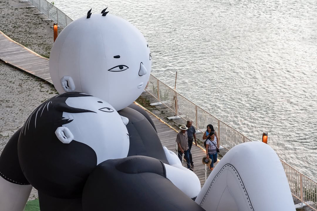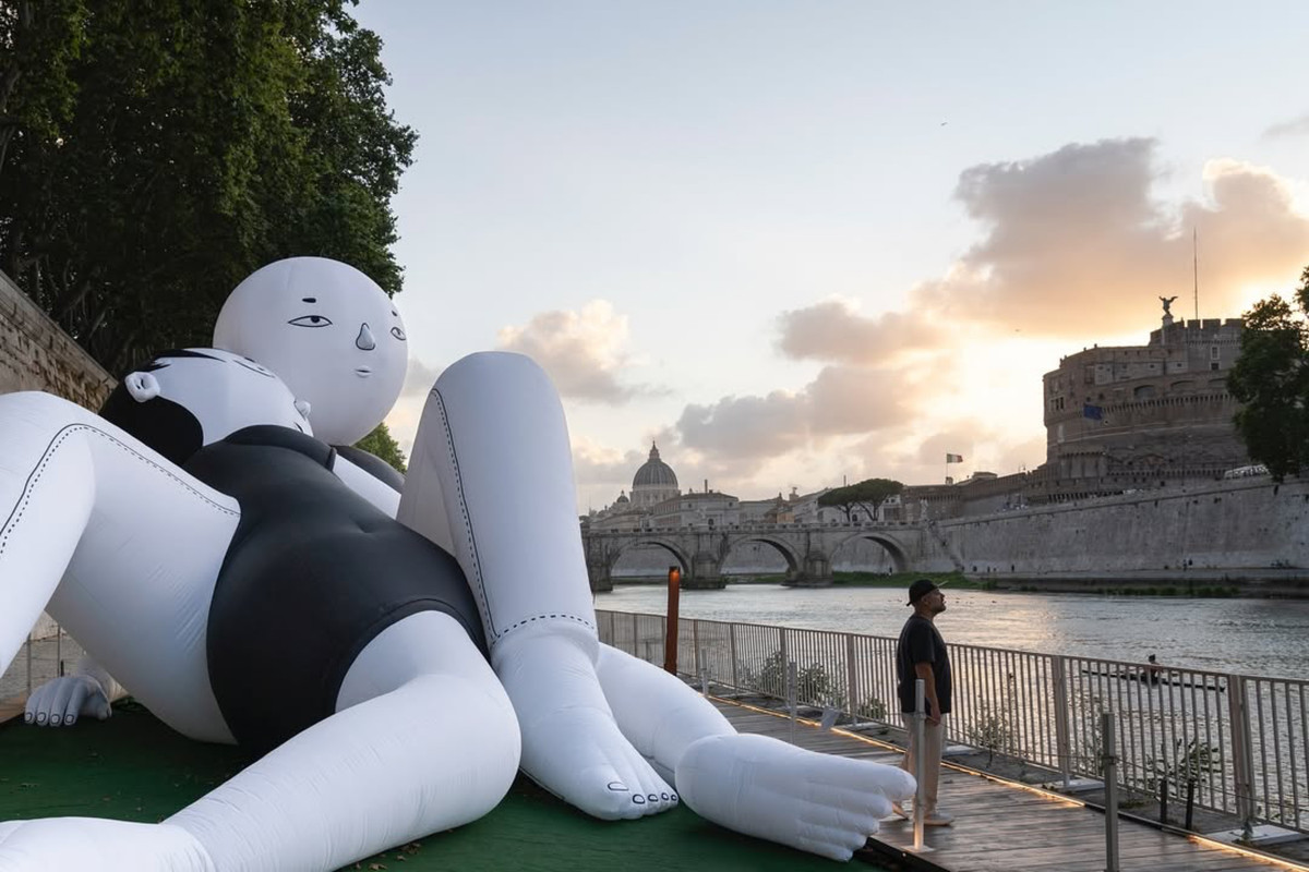 ‘The Lovers’ rappresenta la sintesi perfetta di due forme d’arte uniche: la progettazione ingegnerizzata e su misura di FLY IN e il linguaggio grafico inconfondibile della street art di Millo. La spettacolare installazione gonfiabile domina da alcune settimane un tratto del Lungotevere, a Roma, a due passi dalla maestosità millenaria di Castel Sant’Angelo.