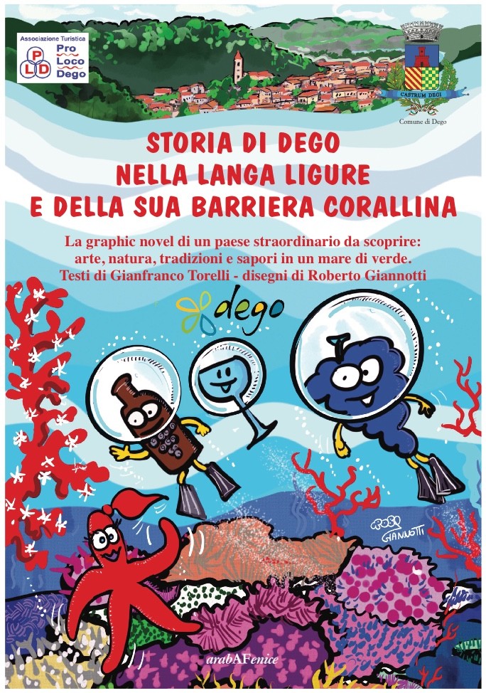 Il piccolo centro di Dego, in provincia di Savona, è infatti il protagonista di “Storia di Dego nella Langa Ligure e della sua Barriera Corallina”, un’opera a fumetti realizzata da Gianfranco Torelli, (vigneron della Langa Astigiana e creatore del primo vino biologico in Italia) e da Roby Giannotti (giornalista e wine&food cartoonist di fama nazionale). Il volume, edito da Araba Fenice Edizioni, intreccia in modo originale elementi di storia, geologia e tradizioni del territorio, con l’obiettivo di coinvolgere giovani e adulti.