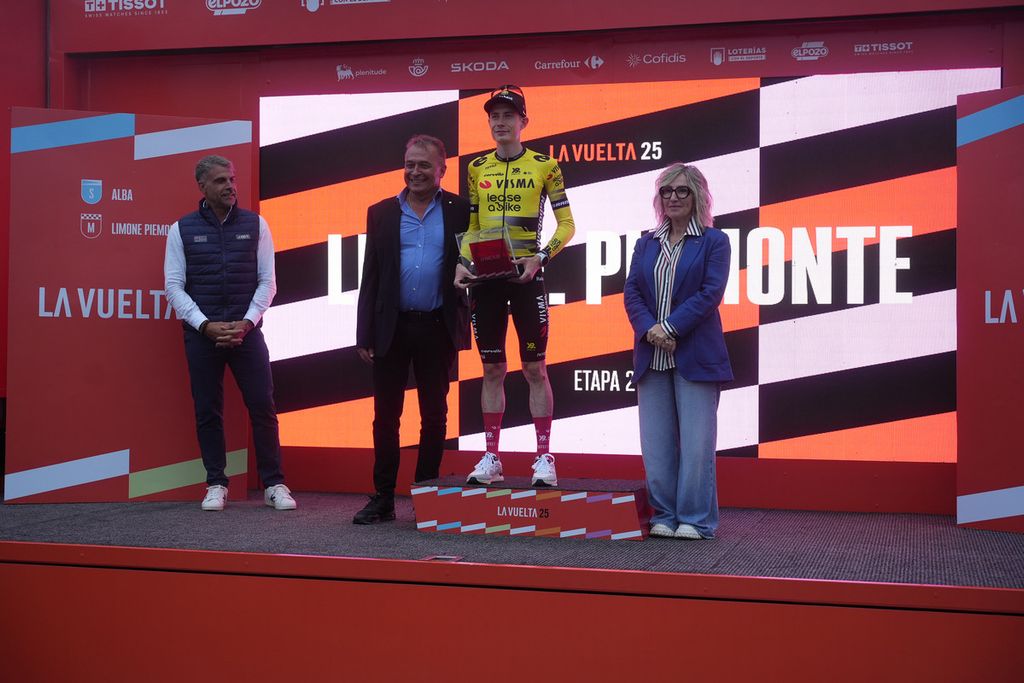 Jonas Vingegaard, ciclista del Team Visma- Lease a Bike, è arrivato per primo al traguardo di Limone Piemonte, aggiudicandosi la seconda frazione scattata ad Alba.