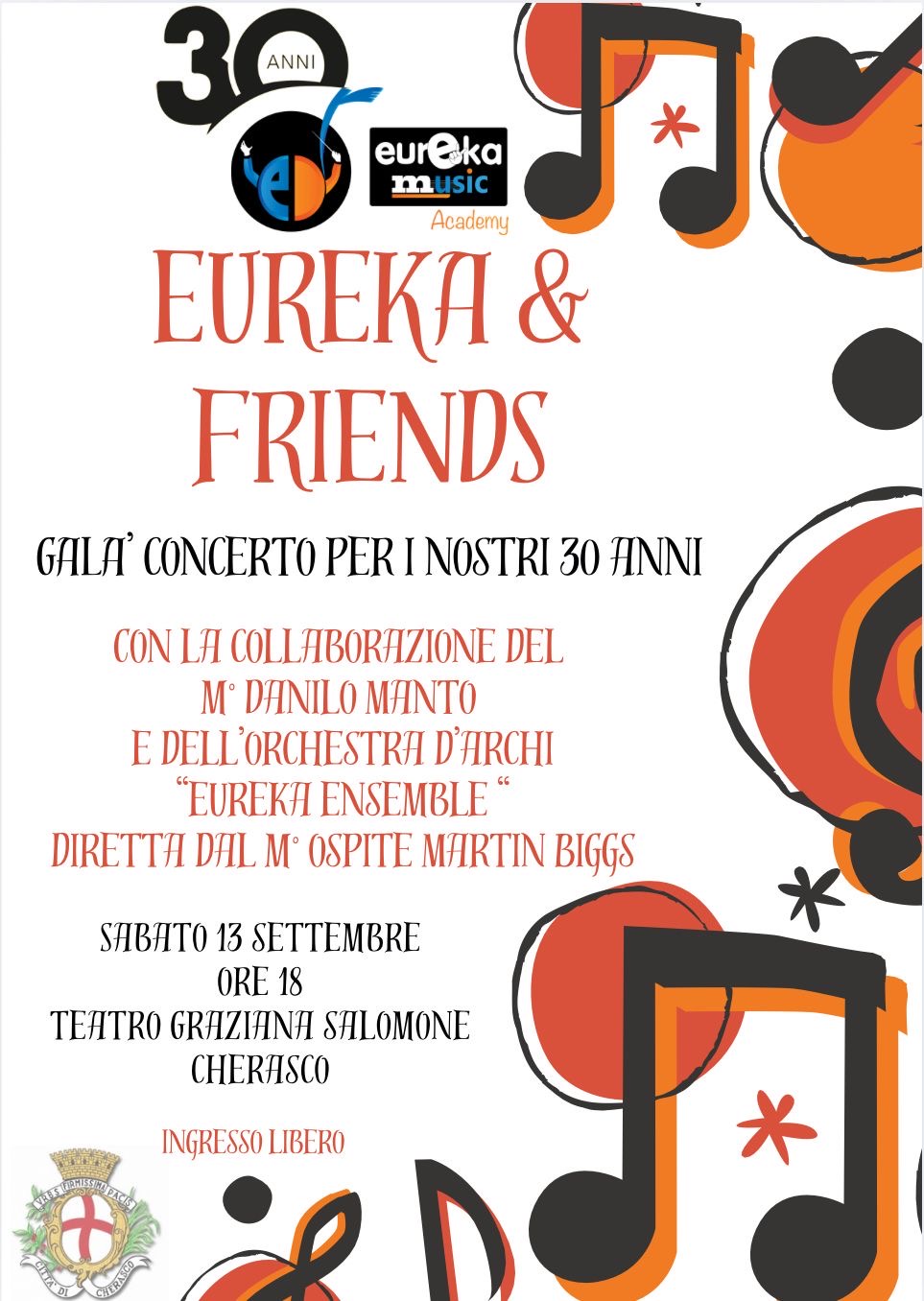Per l’occasione, venerdì 13 settembre alle ore 18.00, presso il Teatro Salomone di Cherasco, si terrà un Gala Concerto che vedrà protagonisti artisti e musicisti ospiti, in un evento pensato per festeggiare insieme tre decenni di cultura, musica e condivisione