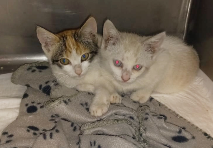 I gattini sono stati subito soccorsi: sono due fratellini, un maschio e una femmina, inseparabili. Purtroppo alla micetta si è dovuto amputare la coda, perchè era in necrosi.