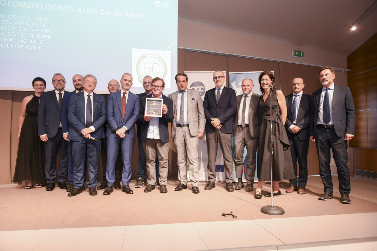 - Geometri iscritti all’Albo da 50 anni: Claudio Allocco, Primo Ceccarelli, Valerio Meiranesio, Giuseppe Moscone, Michelino Perno, Guido Molineris.