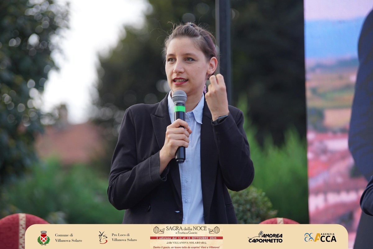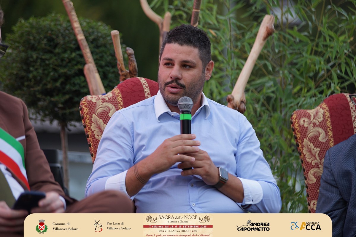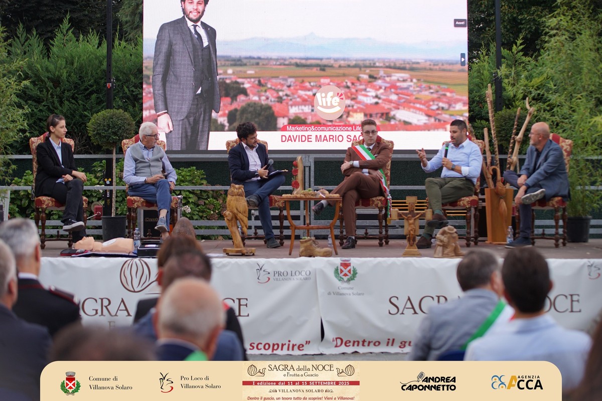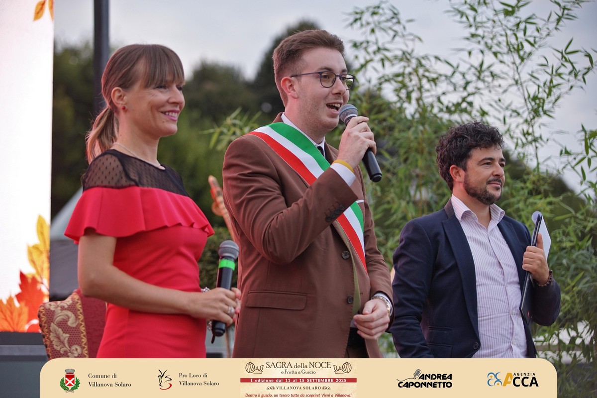 Dopo il convegno del pomeriggio, lo scrigno di piazza Pairotti a Villanova Solaro ha accolto l’inaugurazione ufficiale della prima Sagra della Noce e della Frutta a Guscio: un momento che ha sancito l’avvio della kermesse davanti a un pubblico numeroso e partecipe, con tanti ospiti sul palco. A presentare l’evento Andrea Caponnetto e Ilaria Salzotto.