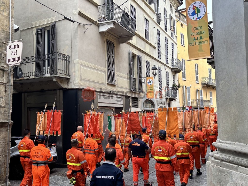 Questa mattina, domenica 14 settembre, l’onda arancione dei volontari AIB, provenienti da tutte le province della Regione, ha sfilato per le vie del centro storico, con l’accompagnamento della Fanfara della Brigata Alpina Taurinense e delle Bande di Farigliano, Bene Vagienna e Chiusa di Pesio.